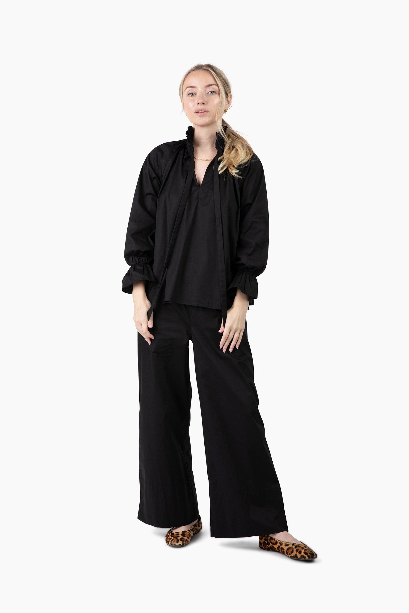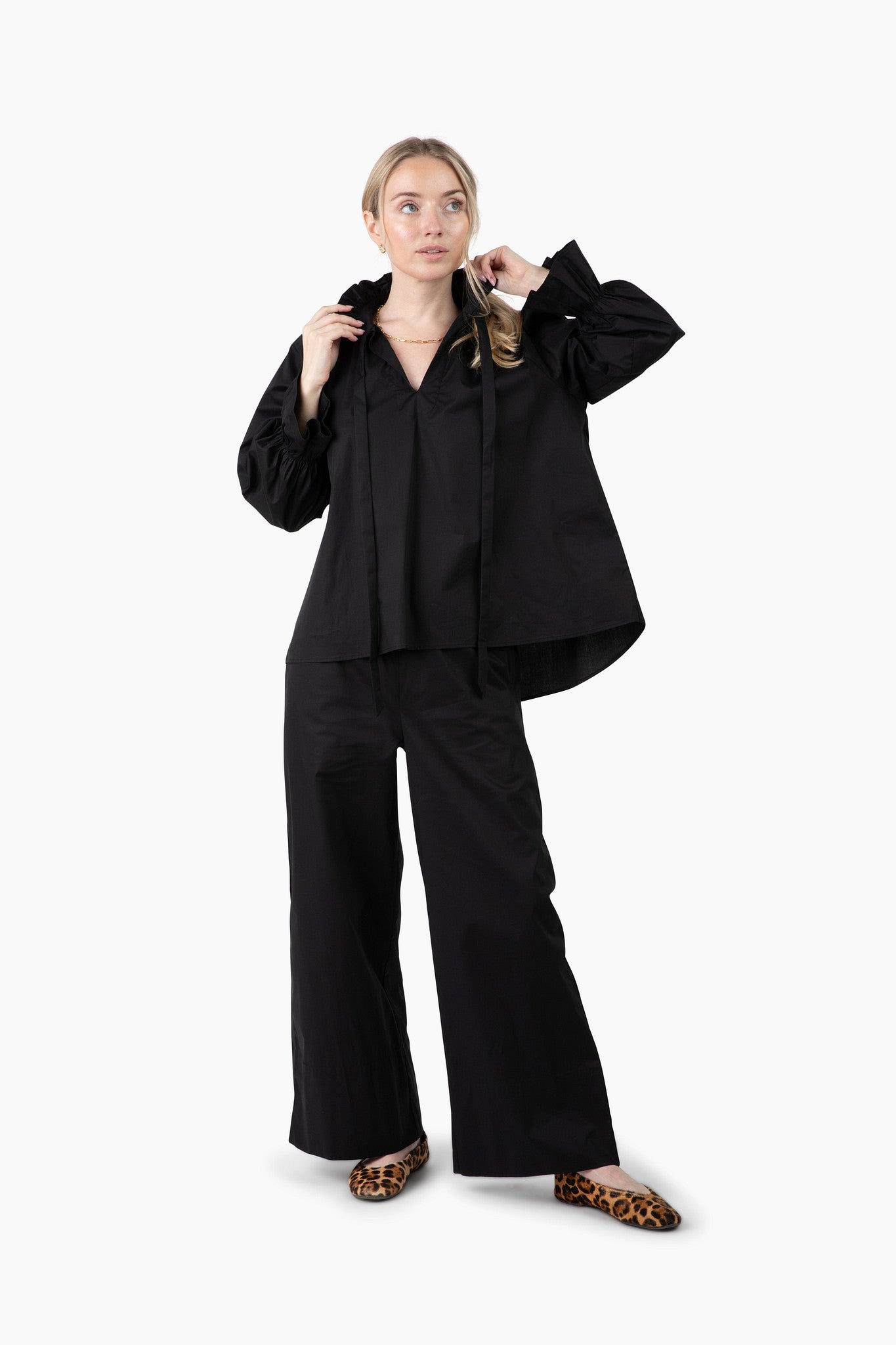 Inspired by a vintage poet blouse, this matching set offers head to toe comfort with a flowy, relaxed fit. We love the romantic details of this feminine duo with billowy sleeves, a soft ruffle collar and a slightly oversized silhouette. The Juliette beckons you to slow down and treat yourself to well-deserved self-care that's all about peace and comfort that's equally beautiful. Whether you are curled up reading a book, meeting a friend for coffee or headed out for a day of travel, you'll feel effortless in this put together ensemble. Pair the top with your favorite denim for an easy look you can wear anywhere, and the slip-on pants look great with your favorite white tee or blouse. Expertly crafted with the finest cotton poplin enhanced with a hint of stretch for unbelievable comfort and the most flattering fit.