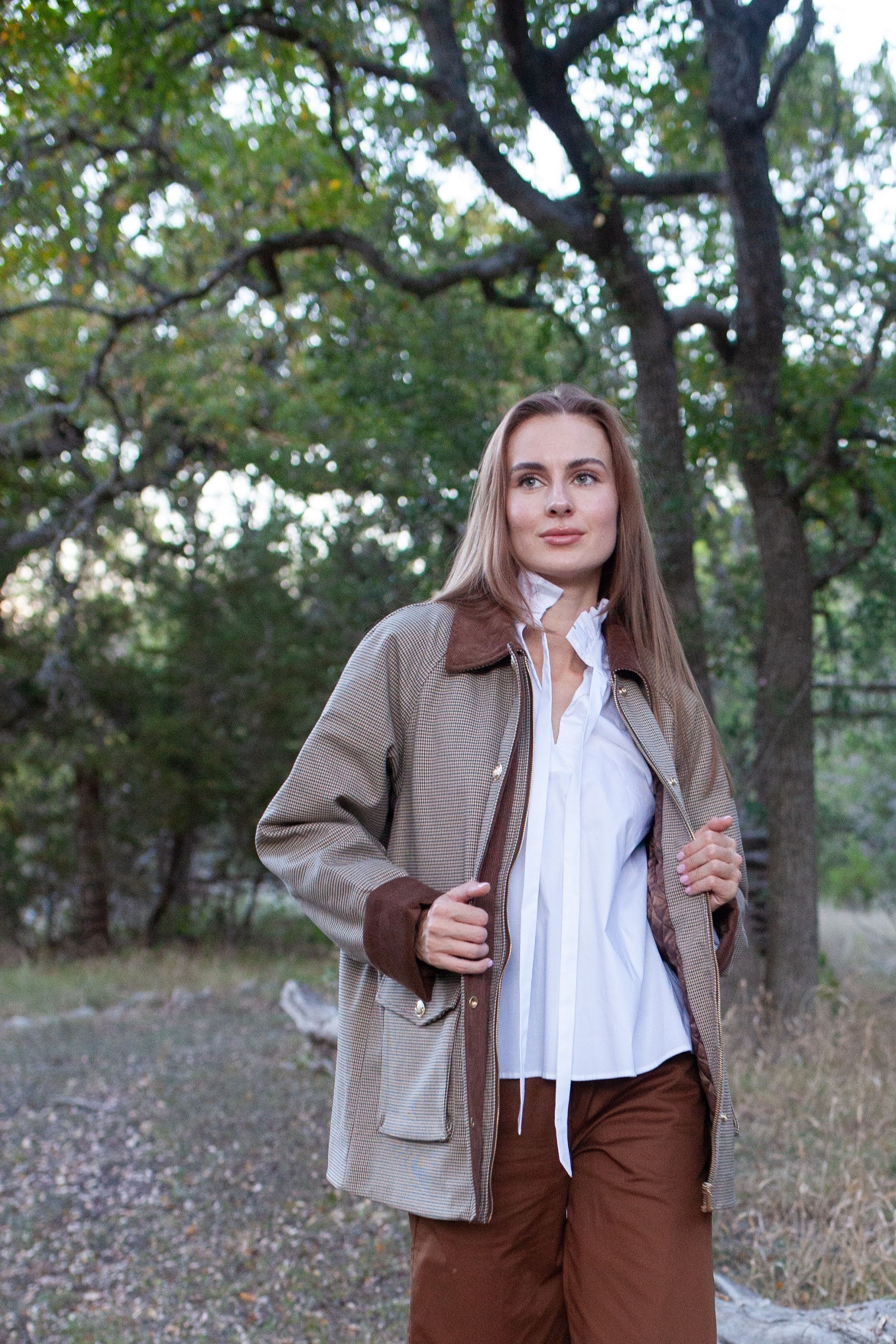 Inspired by the relaxed beauty of a vintage poet blouse, our Juliette top offers stylish comfort with flowy romantic details, including billowy sleeves, ruffle collar and a roomy silhouette. Whether you are curled up reading a book, having coffee with a friend or relaxing with family this holiday, you'll love the versatility and unmatched comfort of this dreamy shirt. Pair with your favorite jeans or Quiet's Culture's bestselling Take Pause Pant for a feel-good, look good outfit you can wear anywhere. Expertly crafted with the finest cotton poplin enhanced with a hint of stretch, this dreamy-soft top will take you through the holiday season in festive comfort and impeccable style.