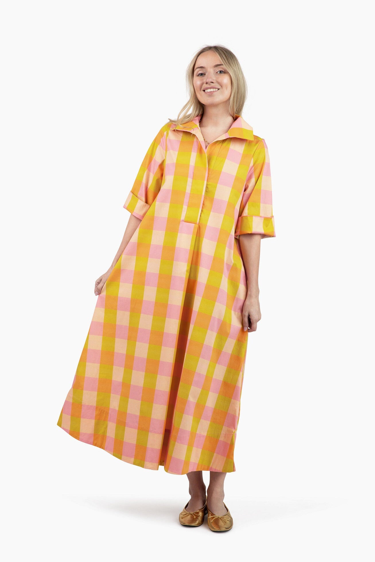 Our bestselling Weekender Caftan Dress in Bella reimagines the versatile comfort of the timeless, relaxed caftan silhouette with three-quarter-length sleeves, a deep, modern hem, and an effortlessly chic style designed for elevated comfort. Pop the collar, cuff the sleeves and add flats, sandals or sneakers for an elevated look with a casual silhouette. A side slit at the hem for comfort and breathability makes this flattering caftan ideal for travel, everyday wear or add pearls and a clutch for an effortless look perfect for special events! Made with our signature dreamy-soft cotton poplin that is breathable, cool to the touch, and enhanced with a hint of stretch for impeccable comfort.