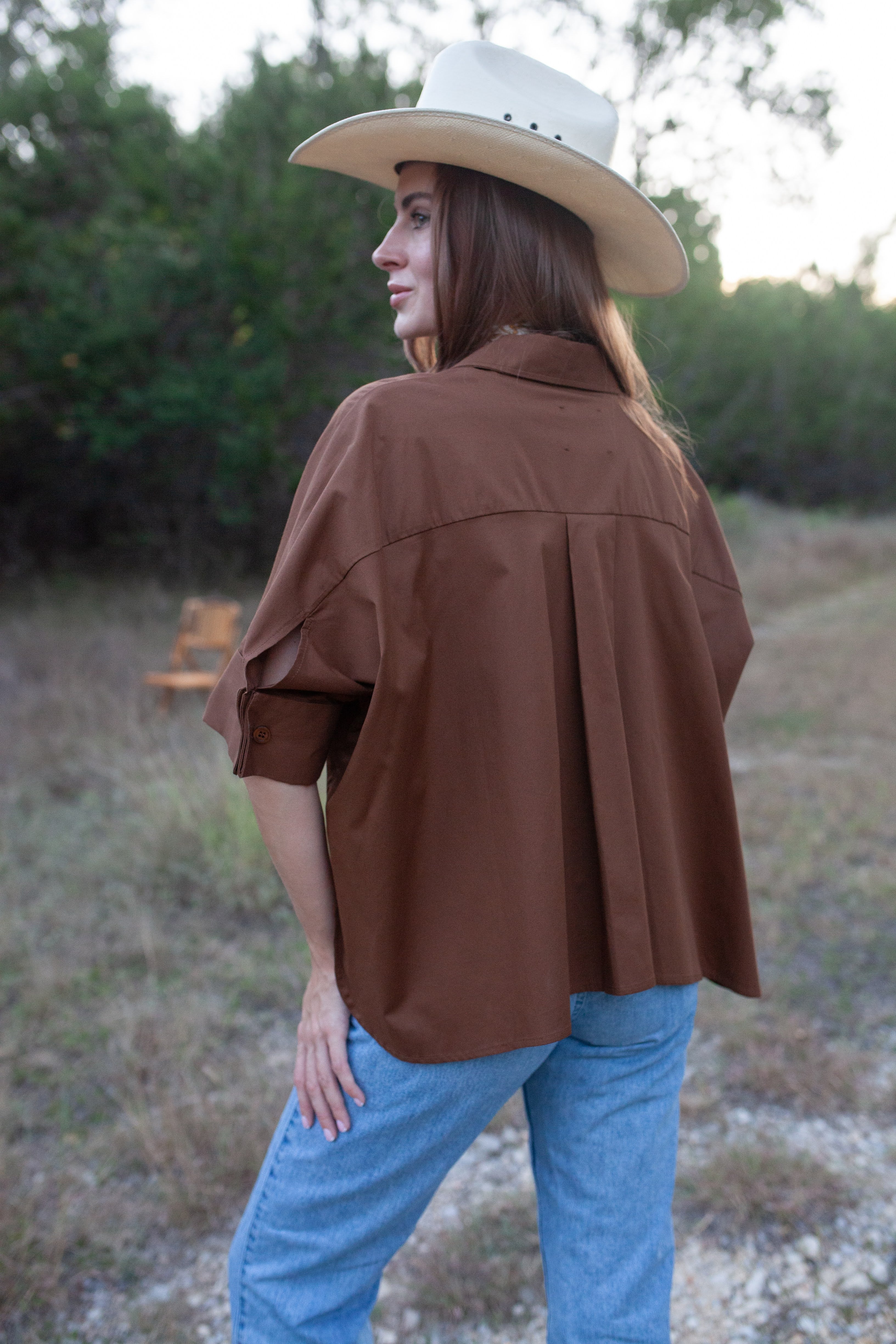 Our newest style top, The Peacemaker, is the perfect blend of elevated comfort and effortless style. This easy-to-wear silhouette has side slits, cuffed sleeves and a relaxed, swing back that moves effortlessly when you move. You'll enjoy the luxurious comfort while enjoying compliments all season long. Versatile and flattering, the Peacemaker Top can be worn with the matching Take Pause Pant or pair with denim for an easy outfit that looks as good as it feels. Exquisitely crafted with ultra-premium cotton poplin enhanced with a hint of stretch for luxurious comfort for wherever the day or night takes you.