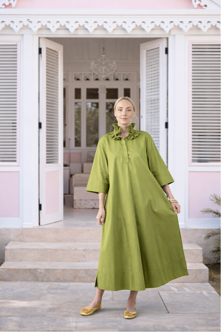 Weekender Ruffle Caftan - Wasabi